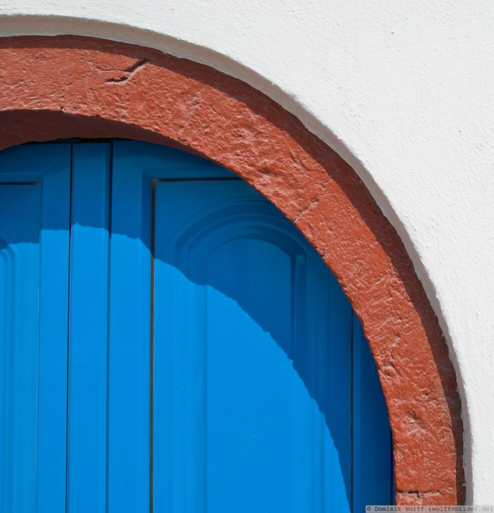 Another door, this one is red. The blue thing above the wall is the sky,…